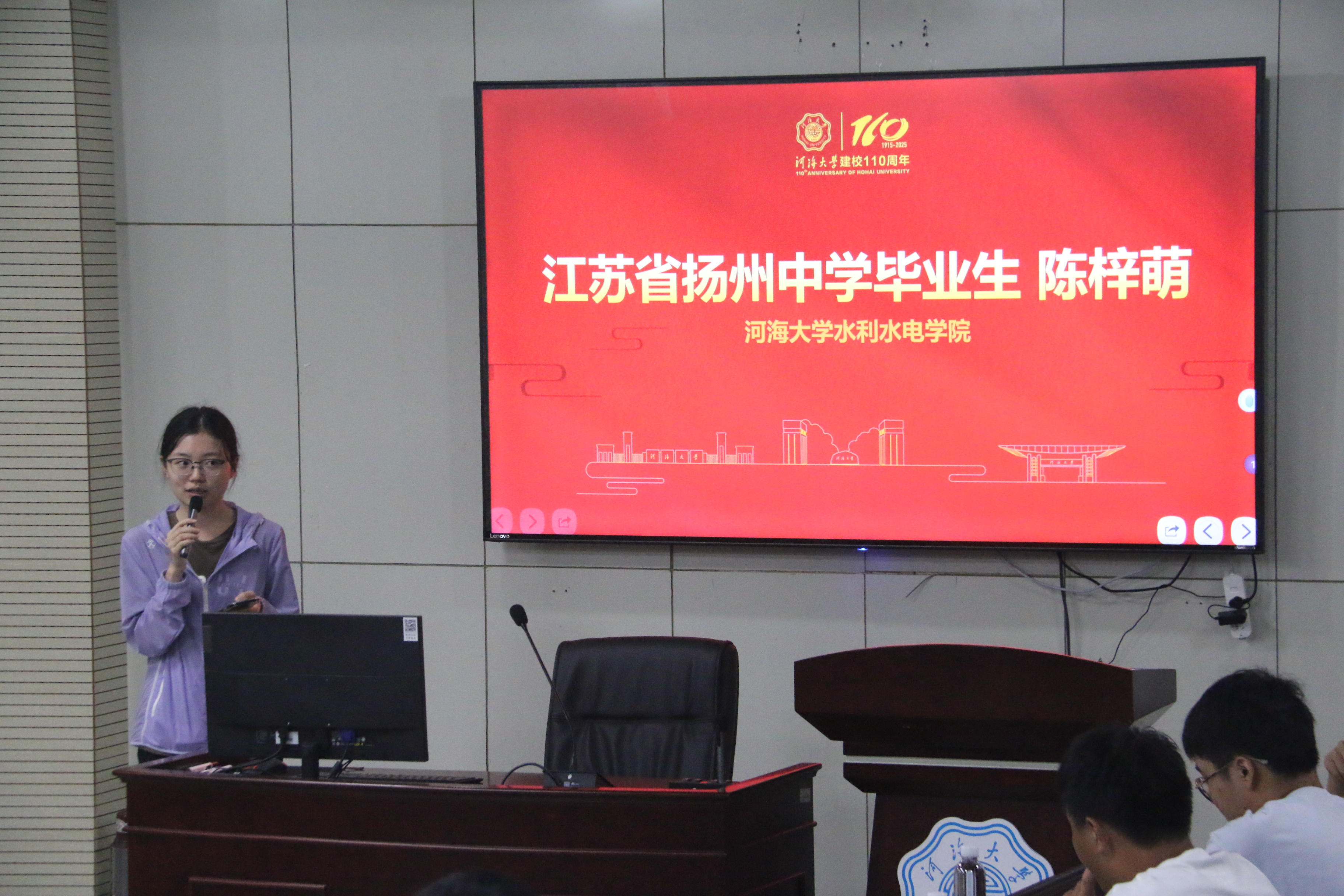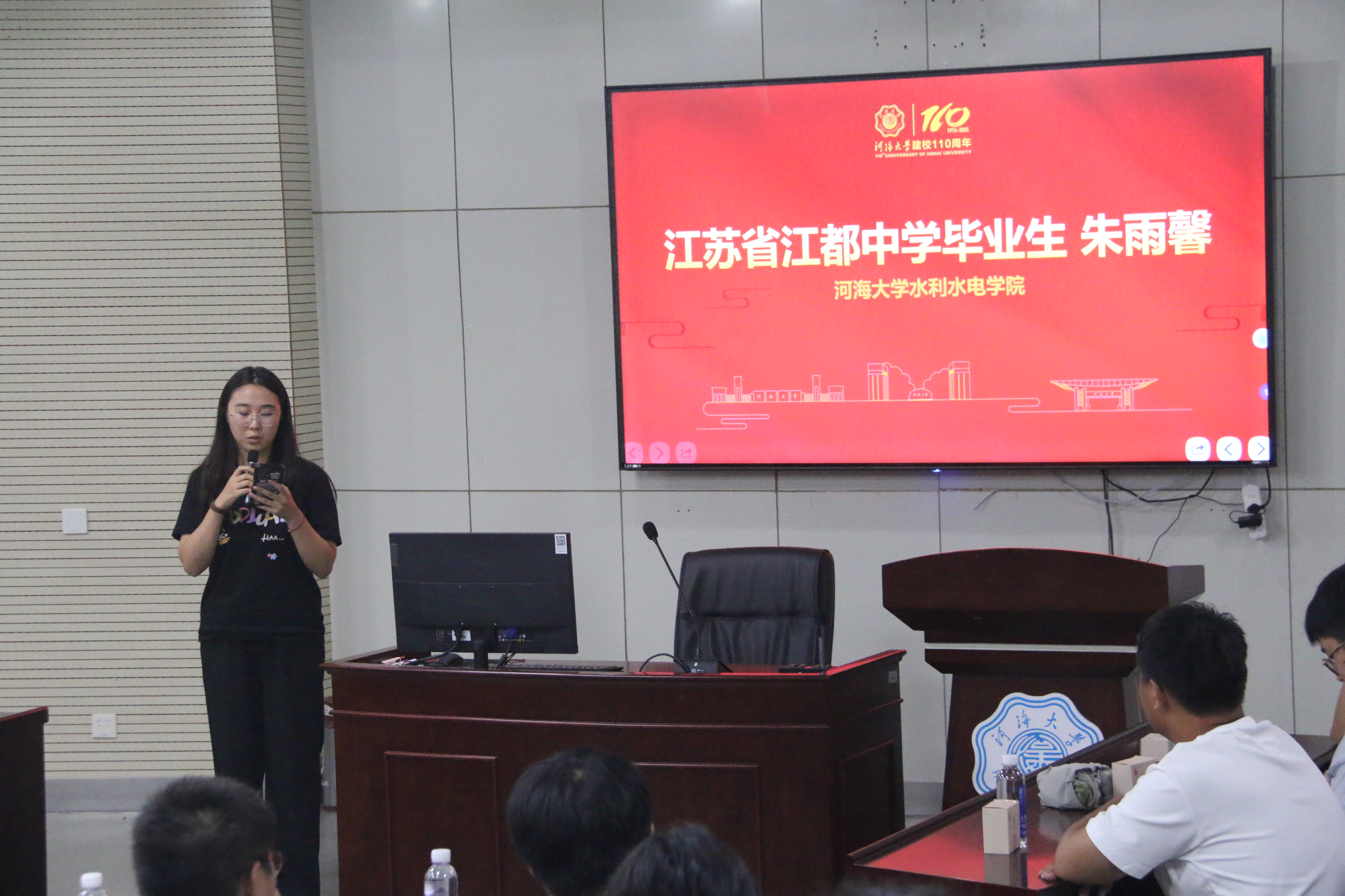 扬州,因水而兴,一座与大运河血脉相连的历史文化名城。来自扬州地区的新生们,自幼便受水文化的熏陶,对水利工程有着独特的亲切感与理解力。本次座谈会邀请了扬州籍的陈梓萌、赵馨、俞游游、朱雨馨四位学姐亲临现场,围绕“学习、竞赛、社会实践、生活”等主题,为同乡学弟学妹们倾囊相授。她们鼓励新生积极进取,勇于面对挑战,在探索未知的道路上学会坚持,并最终“悦纳自己、接受自己、成为自己”,书写丰富而出彩的大学篇章。