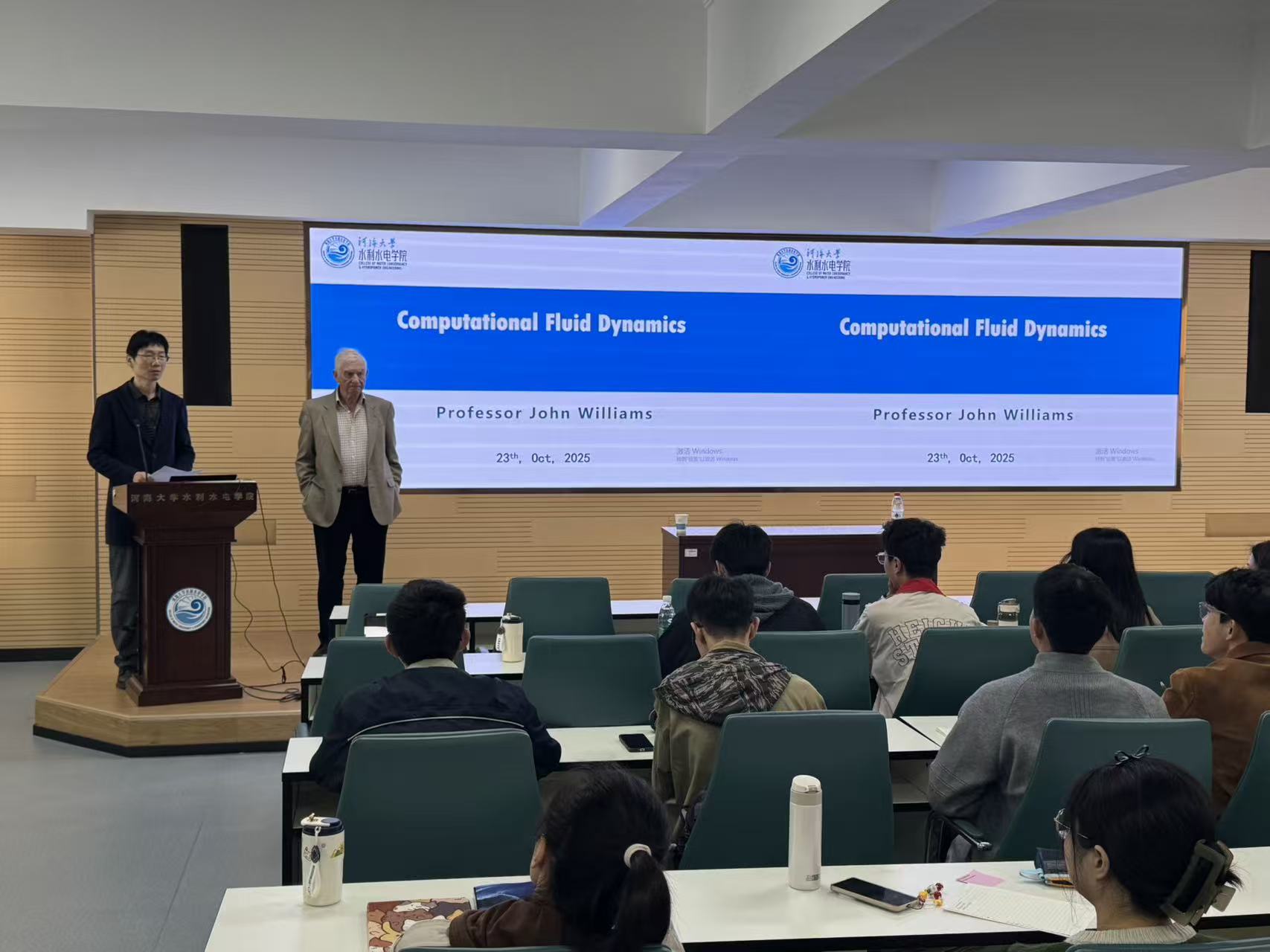 10月23日上午,英国伦敦大学玛丽皇后学院Williams教授应水利部水循环与水动力系统重点实验室邀请访问亚洲太阳sungame首页,开展系列学术交流。报告会由亚洲太阳sungame首页许栋教授主持,亚洲太阳sungame首页、港口海岸与近海工程学院、海洋学院、力学与材料学院相关老师和学生参加交流。Williams教授应邀做了题目为“Computational Fluid Dynamics: the Basics with Applications”的学术报告。报告会主要介绍了计算流体力学的基本原理,控制方程特征和数值求解方法,受到参会老师和同学的热烈欢迎。