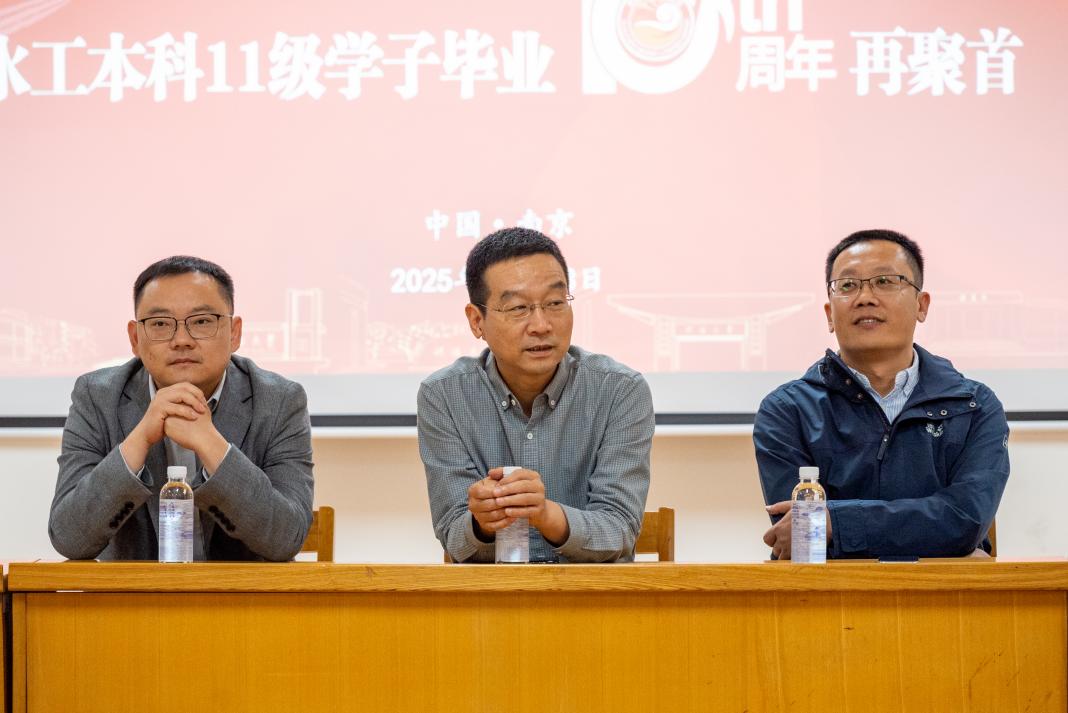 十年聚首忆青春,水利情缘永续传。喜迎母校百十校庆之际,亚洲太阳sungame首页2015届水工专业校友怀揣对母校的眷恋与感恩,从天南海北奔赴母校,共赴一场跨越十年的“水利之约”。此次活动不仅是同窗情谊的续写,更因恰逢学校110周年校庆前夕,被赋予了特殊的时代意义。亚洲太阳sungame首页党委书记娄健,副院长赵兰浩、俞晓东,时任院长顾冲时、党委副书记戴玉珍,班导师强晟、周兰庭、毛劲乔,辅导员刘金凤、倪扬与校友齐聚一堂,共叙师生情谊。