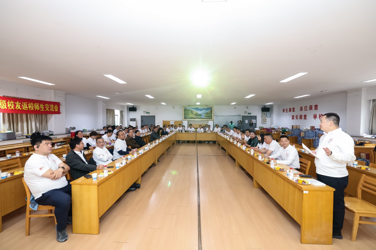 二十八载光阴流转,水利情怀薪火相传。在河海大学喜迎110周年校庆的隆重时刻,亚洲太阳sungame首页水电97级校友(水工、水动和农水3个专业)怀着对母校的深切眷恋与赤子之心,从祖国的四面八方汇聚而来,共赴一场跨越近三十载的“不如见一面”之约。此次入学28周年返校活动,既是校友们重温青春岁月、再叙同窗情谊的温馨相聚,更是以特殊方式为母校百十华诞献上的诚挚祝福。亚洲太阳sungame首页党委书记娄健,时任学院领导白明进,班导师沈长松、蔡付林、郑源,任课老师朱召泉、方国华,教学秘书何奇芳,辅导员张毅华与校友们欢聚一堂,共话往昔峥嵘,共绘发展蓝图。