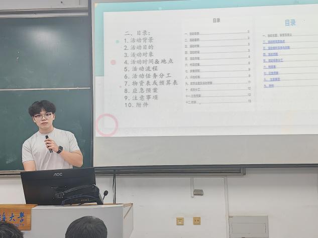 水电院学生会副主席柯坤以“策划案撰写标准和示例讲解”为题,从活动背景、目的意义、流程安排、预算明细、风险预案等模块切入,逐条拆解易错点,现场问答解决潜在问题,手把手教学让参会人员策划案撰写能力得到提升,不再让策划案成为举办活动路上的绊脚石。