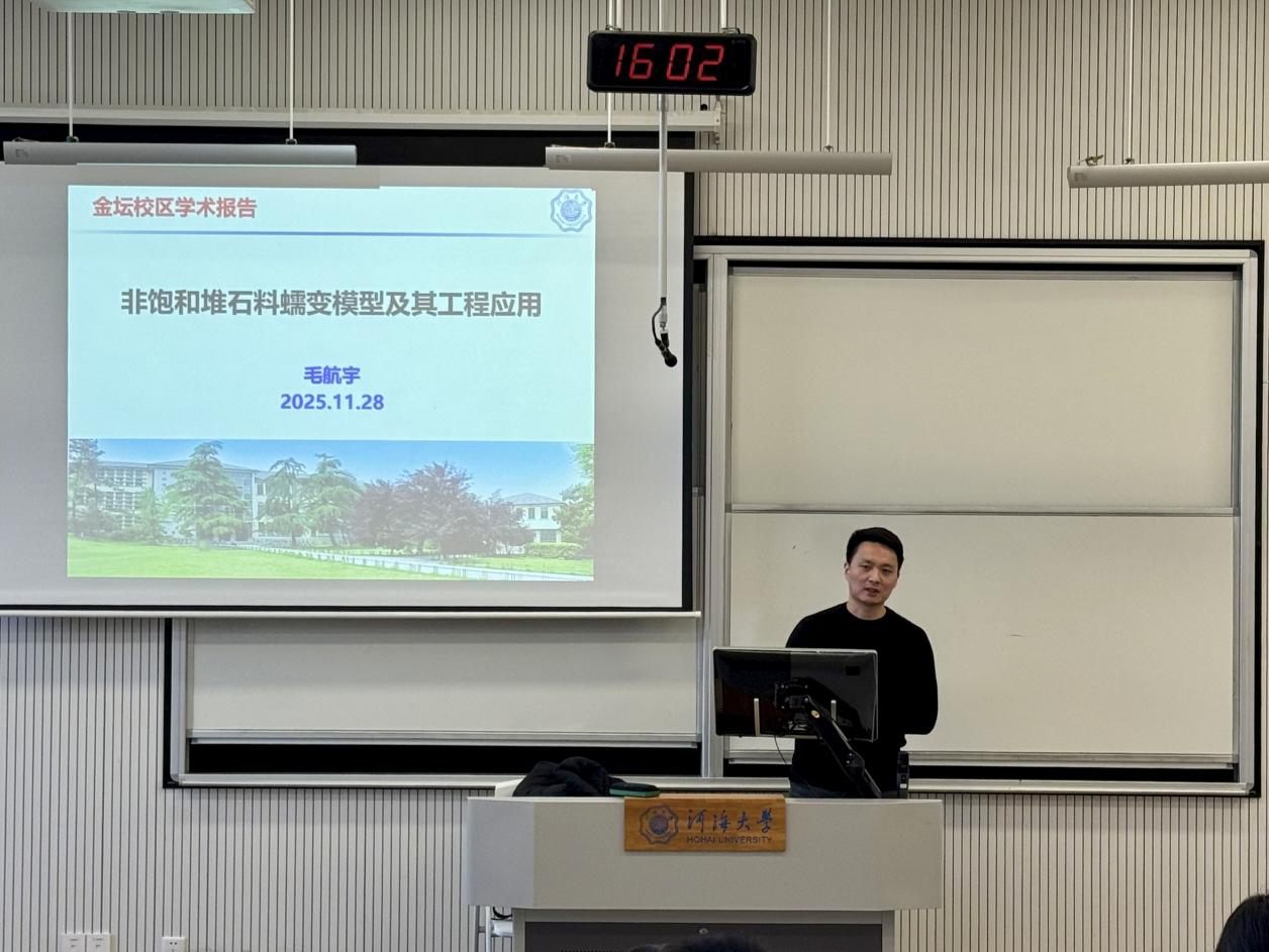 11月28日,亚洲太阳sungame首页毛航宇副教授于常州校区2号楼B114作题为《非饱和堆石料蠕变模型及其工程应用》的讲座,亚洲太阳sungame首页2024级本科生参加此次讲座。