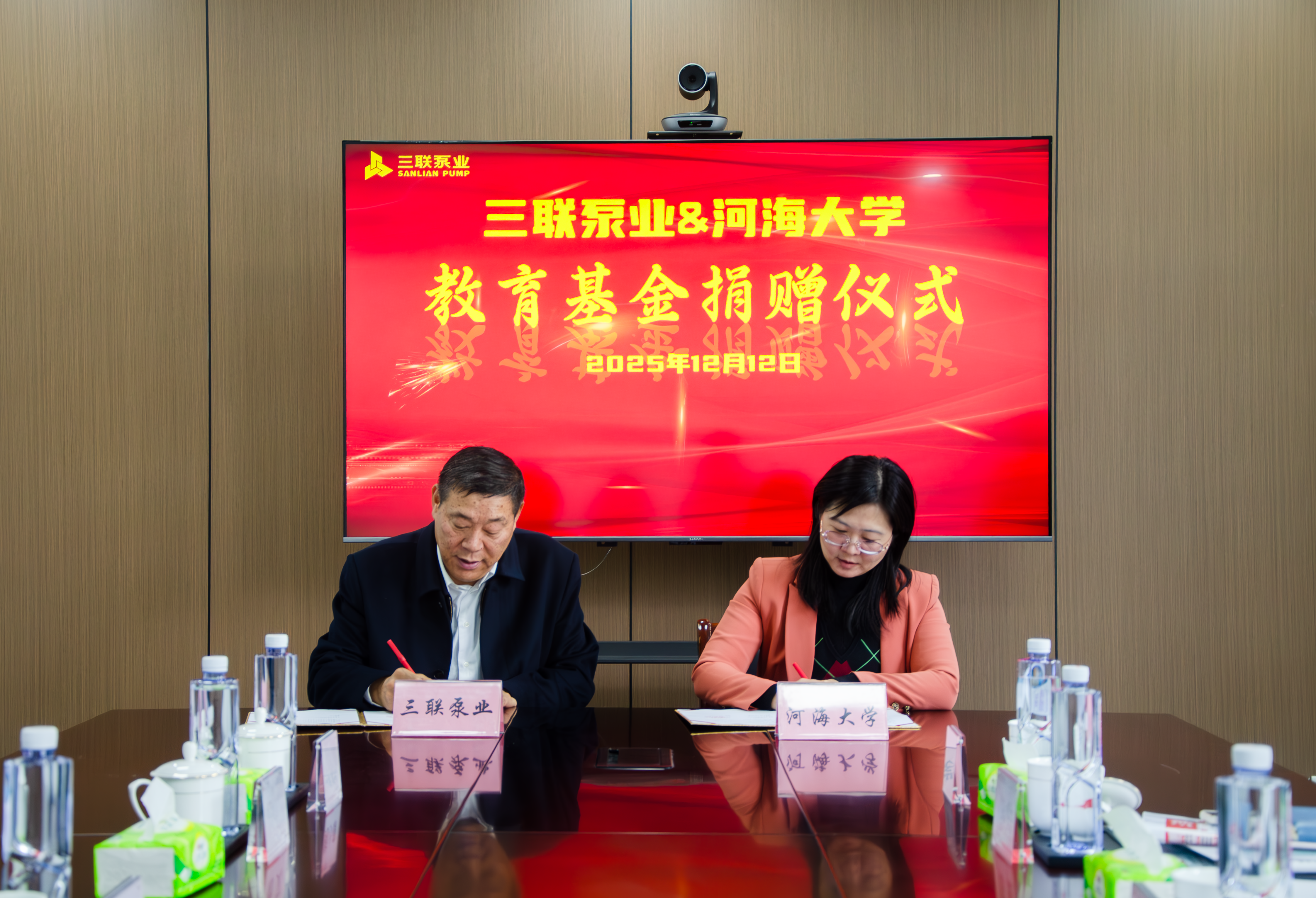 12月12日,三联泵业股份有限公司(以下简称“三联泵业”)捐赠仪式在三联泵业公司举行。三联泵业董事长何祥炎,技术总工杨文,河海大学国内合作发展处处长、教育基金会办公室主任赵冰,亚洲太阳sungame首页党委书记娄健、水利系副主任陈胜等出席仪式。